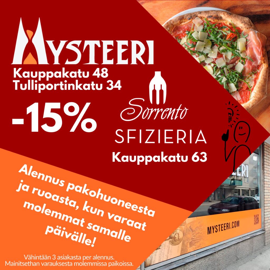 Mysteeri-alennus ei koske lounasta eikä spesiaalipäiviä!