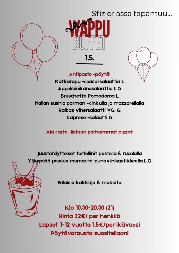 Menut saatavilla vain ennakkotilauksesta. Minimilaskutusmäärä 15 henkilöä.