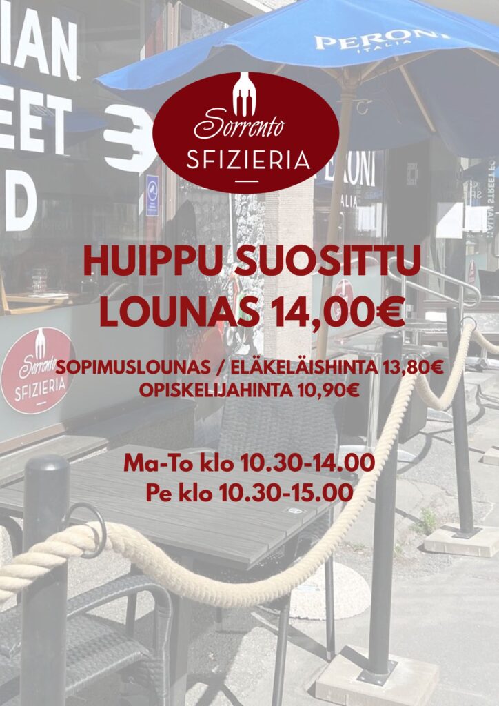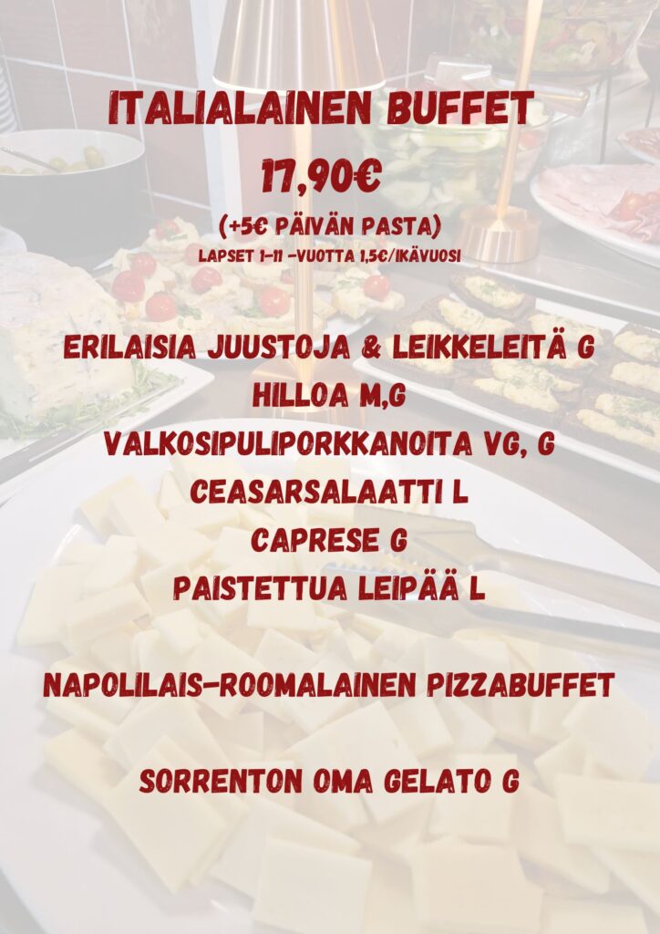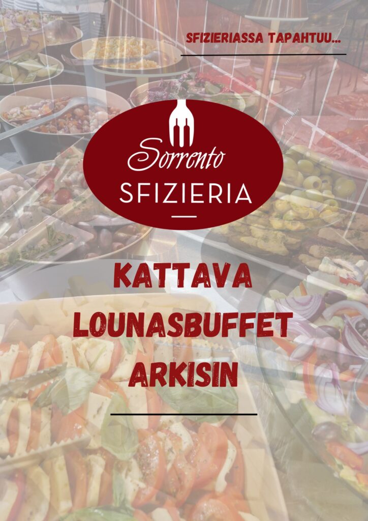 Lounaalla aina italialainen salaattibuffet, napolilais-roomalainen pizzabuffet & Jälkiruokabuffet!